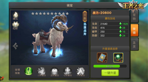 全新魔灵BOSS手游——3K游戏《王者之光》以于2018年末全平台首发,在推出符文系统、战盟等新玩法的创新基础上,还保留了宠物和坐骑这种传统RPG游戏成长系统。